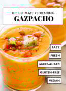 This gazpacho recipe is the best! Itโ€™s a refreshing chilled summer soup, perfect for your garden tomatoes and cucumber. Be sure to make it in advance so the soup can chill for at least 2 hours. Recipe yields 5 cups, enough for 4 servings.