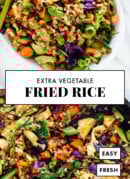 Learn how to make vegetable fried riceโitโs a simple and satisfying dinner! This vegetarian recipe features extra vegetables and brown rice.ย Recipe yields 2 large or 3 moderate servings (I think you could double it if you have a large enough skillet, but you might not get as much caramelization on the edges of the veggies and rice).